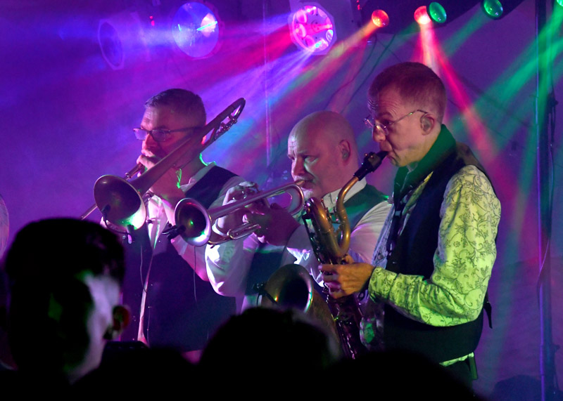 HUGE's hefty 4-piece brass section made up of not one but TWO saxes, a trumpet and a trombone not only provide the power to the HUGE sound, but also make the audience feel better about themselves with their shocking attempts at dancing.
