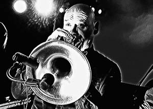 HUGE's leader of lunacy - maniacal frontman Big Ian grabs the audience from the first song and makes them a part of the show. His zany sense of humour and ability to think on his feet have had audiences up and down the country singing, dancing and laughing.